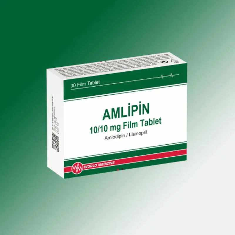 - AMLİPİN, kırmızı-kiremit kırmızısı renkli, bir yüzü çentikli, yuvarlak, bikonveks film tablettir. AMLİPİN, kalsiyum kanal blokörleri (kalsiyum antagonistleri) olarak adlandırılan bir ilaç grubunda yer alan amlodipini ve anjiyotensin dönüştürücü enzim inhibitörleri (ADE) olarak adlandırılan bir ilaç grubunda yer alan lisinoprili içeren bir kombinasyondur.