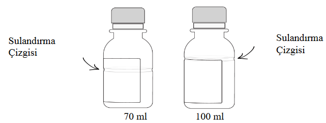 - Daha sonra şişe üzerindeki sulandırma çizgisine gelecek kadar (kalan 1/3) su ekleyerek şişeyi yeniden çalkalayınız (Süspansiyon hazırlamak için önceden kaynatılmış ve soğutulmuş su tercih edilmelidir).