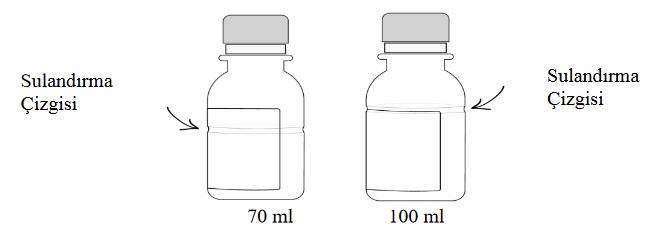 - Daha sonra şişe üzerindeki sulandırma çizgisine gelecek kadar (kalan 1/3) su ekleyerek şişeyi yeniden çalkalayınız (Süspansiyon hazırlamak için önceden kaynatılmış ve soğutulmuş su tercih edilmelidir).