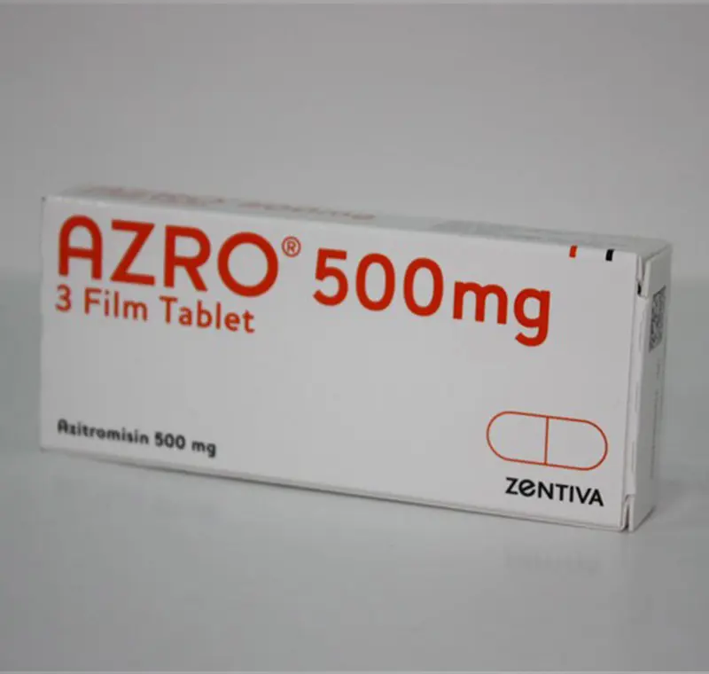 AZRO 500 mg film tablettir. 3 tabletlik blister ambalajlarda bulunur, her bir tablet 500 mg azitromisin içermektedir. AZRO, beyaz, dikdörtgen, konveks, çentikli film kaplı tablettir.