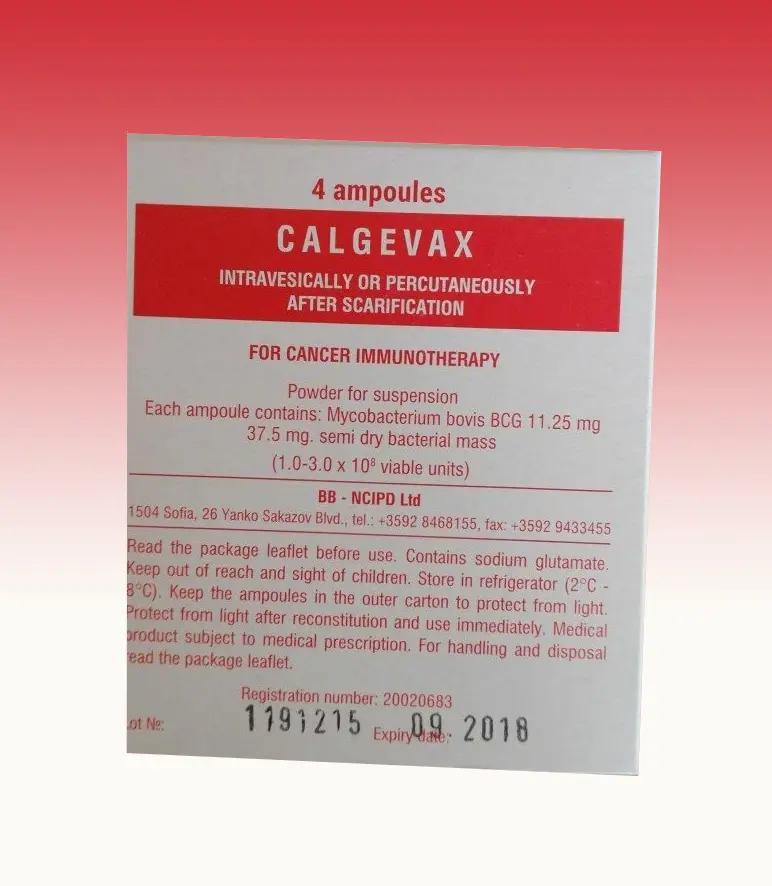 CALGEVAX-BCG, beyaz renkli liyofilize toz halinde olup, zayıflatılmış canlı bakteri içeren, ek olarak bağışıklık tedavisinin önerildiği mesane (idrar kesesi) kanseri tedavisinde immünostimülan (bağışıklığı uyaran) olarak kullanılmak üzere özel olarak geliştirilmiştir. 1 ml steril salin ile kullanıma hazır hale getirildiğinde homojen, hafifçe opak ve renksiz bir süspansiyona (katı-sıvı karışımı) dönüşür.