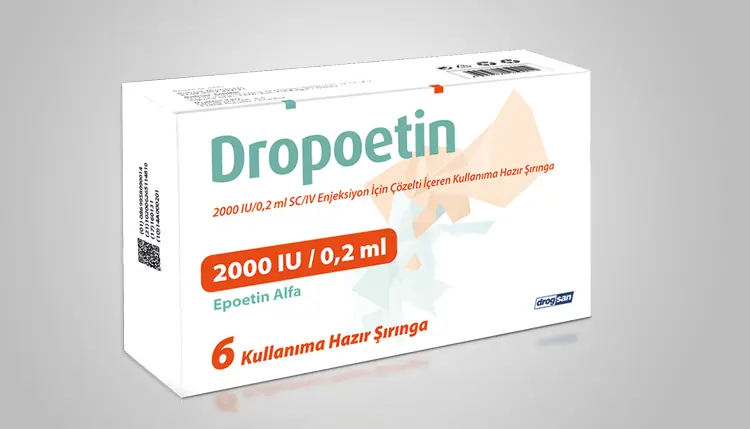 - DROPOETİN, berrak, renksiz çözelti içeren kullanıma hazır şırıngadır. Bir paketinde 6 adet kullanıma hazır şırınga, iğne güvenlik düzeneği ile sunulmaktadır.