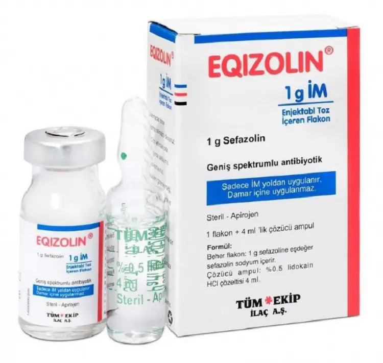 EQİZOLİN bir antibiyotiktir. Her flakon 1 g sefazolin (sodyum olarak) içerir. 1 g sefazolin (sodyum olarak) içeren 1 flakon ve 4 ml % 0.5 lidokain hidroklorür içeren 1 çözücü ampul bulunan ambalajlarda sunulmaktadır.