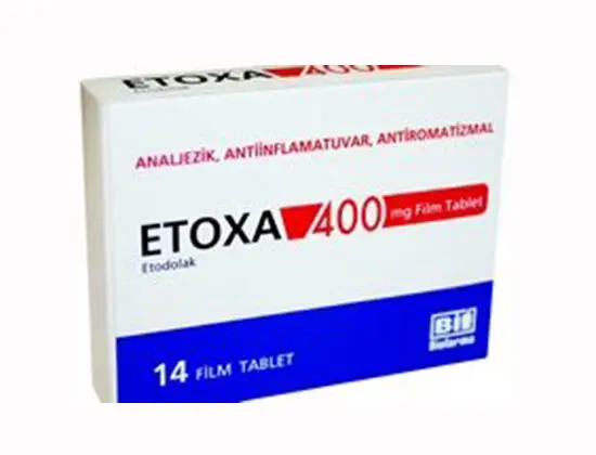 - ETOXA, etkin madde olarak etodolak içeren film kaplı tablettir. ETOXA iltihapla oluşan karakterize durumların tedavisinde kullanılan (steroid içermeyen antiinflamatuvar) ilaç grubundandır.