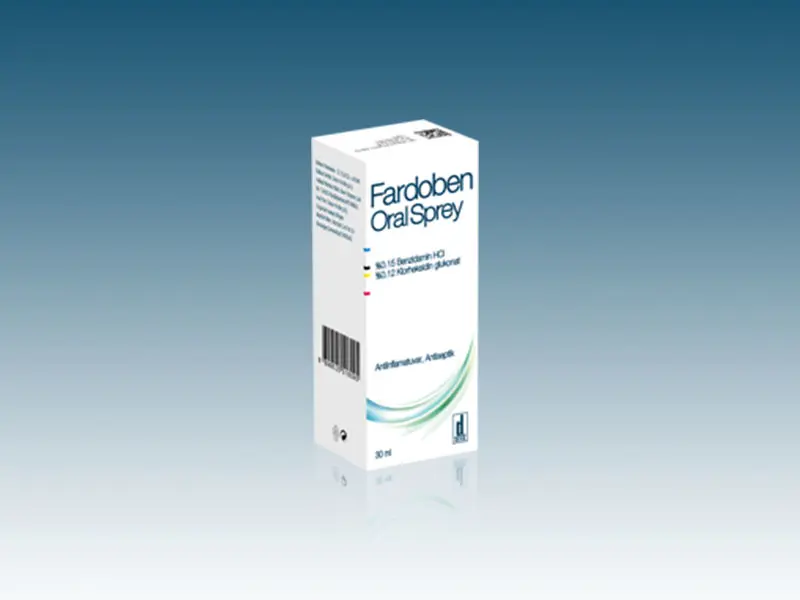 - FARDOBEN, antimikrobiyal (mikropları öldüren veya çoğalmasını durduran) etkide bir madde olan klorheksidin glukonat ile non-steroidal antiinflamatuar ilaçlar olarak isimlendirilen gruba ait, ağrı ve inflamasyonun (iltihap) tedavisinde kullanılan, ayrıca yüzeyel olarak uygulandığında lokal anestezik (uygulandığı bölgede hissizleşmeyi sağlayan) etki gösteren benzidamin HCl içermektedir.