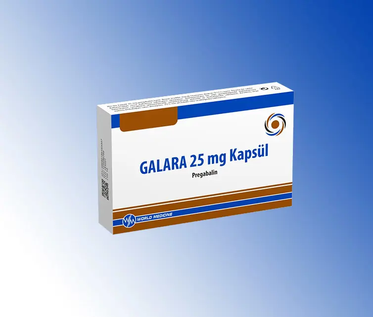 GALARA 25 mg kapsül, beyaz beyazımsı toz içeren beyaz opak gövde,beyaz opak kapaklı kapsüldür. Her kapsül 25 mg pregabalin içerir. 14, 28 ve 56 kapsüllük alüminyum blisterler içeren ambalajda sunulmaktadır.