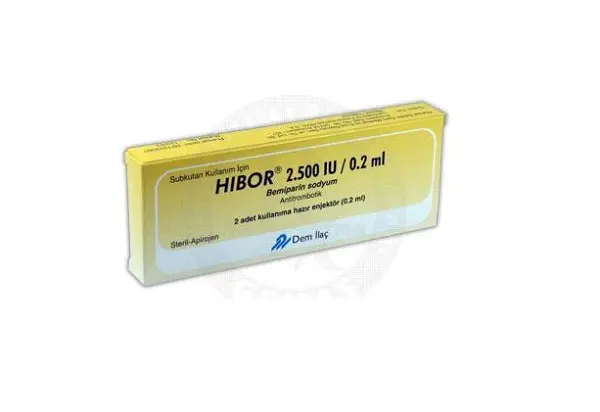 HIBOR 2500 IU/0,2 ML KULLANIMA HAZIR 2 ENJEKTOR Piyasada değil | 2 | Normal reçete | Hayır | 8699769950088 | 20,08 TL |