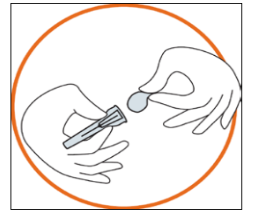 - İğne hala iğne kapağının içerisindeyken kullanıma hazır dolu enjektör üzerine sıkıştırınız.