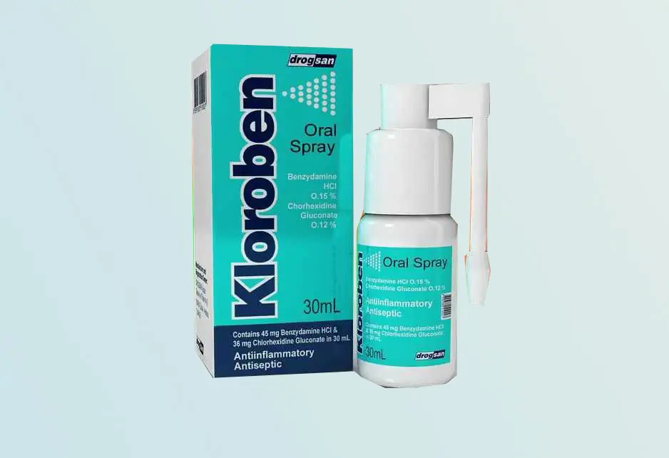 - KLOROBEN, antimikrobiyal (mikropları öldüren veya çoğalmasını durduran) etkide bir madde olan klorheksidin glukonat ile non-steroidal antiinflamatuar ilaçlar olarak isimlendirilen gruba ait, ağrı ve inflamasyonun (iltihap) tedavisinde kullanılan, ayrıca yüzeyel olarak uygulandığında lokal anestezik (uygulandığı bölgede hissizleşmeyi sağlayan) etki gösteren benzidamin HCI içermektedir.