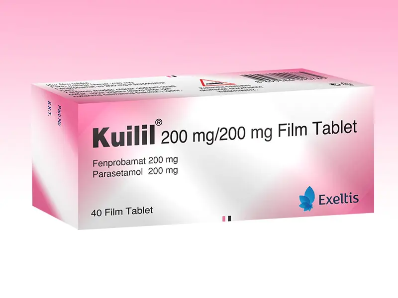 - Pembe renkli ve film kaplı her bir tablet etkin madde olarak 200 mg fenprobamat ve 200 mg parasetamol içermektedir. KUİLİL®, 40 film tablet içeren blister ambalajda kullanıma sunulmaktadır.