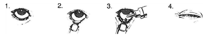 - Şişeyi ters çevirin ve tedavi uygulanması gereken her göze birer damla gelecek şekilde sıkın.