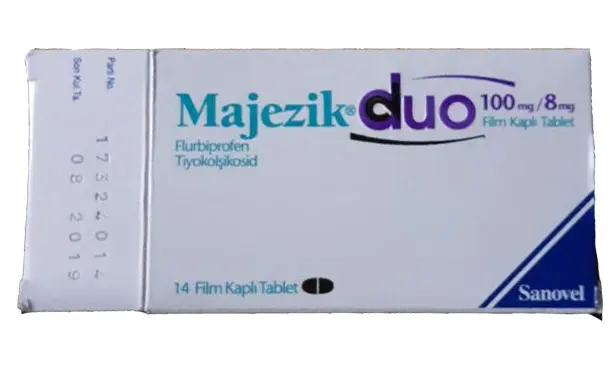 MAJEZİK DUO, flurbiprofen ve tiyokolşikosid adlı etkin maddeleri içeren bir ilaçtır. Flurbiprofen çeşitli ağrıları ortadan kaldırmak ya da hafifletmek amacı ile kullanılan steroid olmayan antiinflamatuvar ilaçlar (NSAİ) olarak bilinen grupta yer alır.