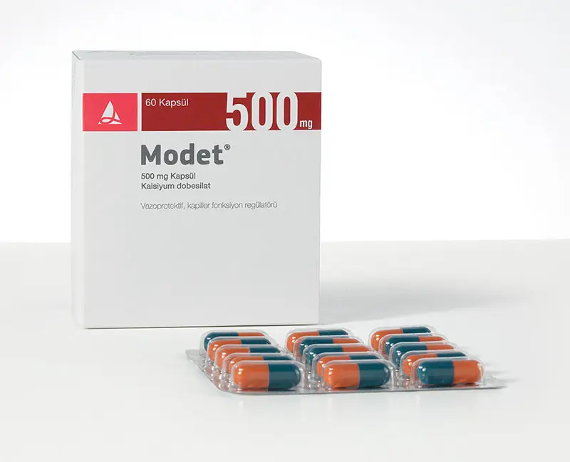 MODET®, 60 adet kapsül içeren blister ambalajda takdim edilmektedir. Her kapsül etkin madde olarak kalsiyum dobesilat içerir.
