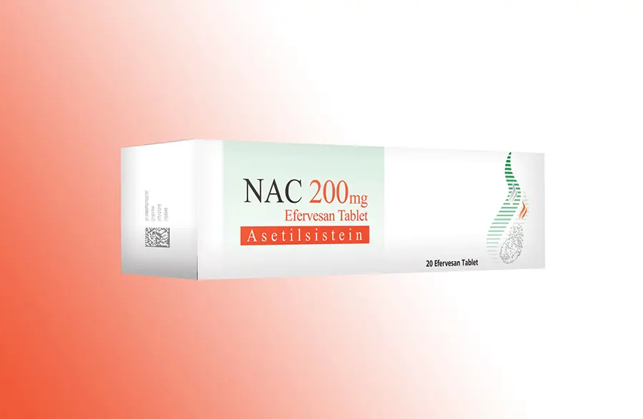 - NAC beyaz, yuvarlak efervesan tabletlerdir. 20 efervesan tablet polietilen kapak polipropilen tüp ambalaj içerisinde ve karton kutuda kullanma talimatı ile beraber ambalajlanır.