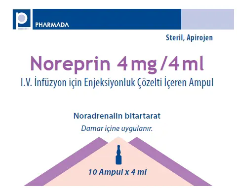 NOREPRIN 4 mg/4 ml IV infüzyon için enjeksiyonluk çözelti içeren 10 ampül