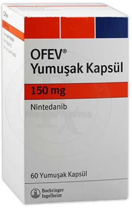 OFEV kapsüller, aktif madde olarak nintedanib içerir ve İdiyopatik Pulmoner Fibrozis (IPF) tedavisi için kullanılır.