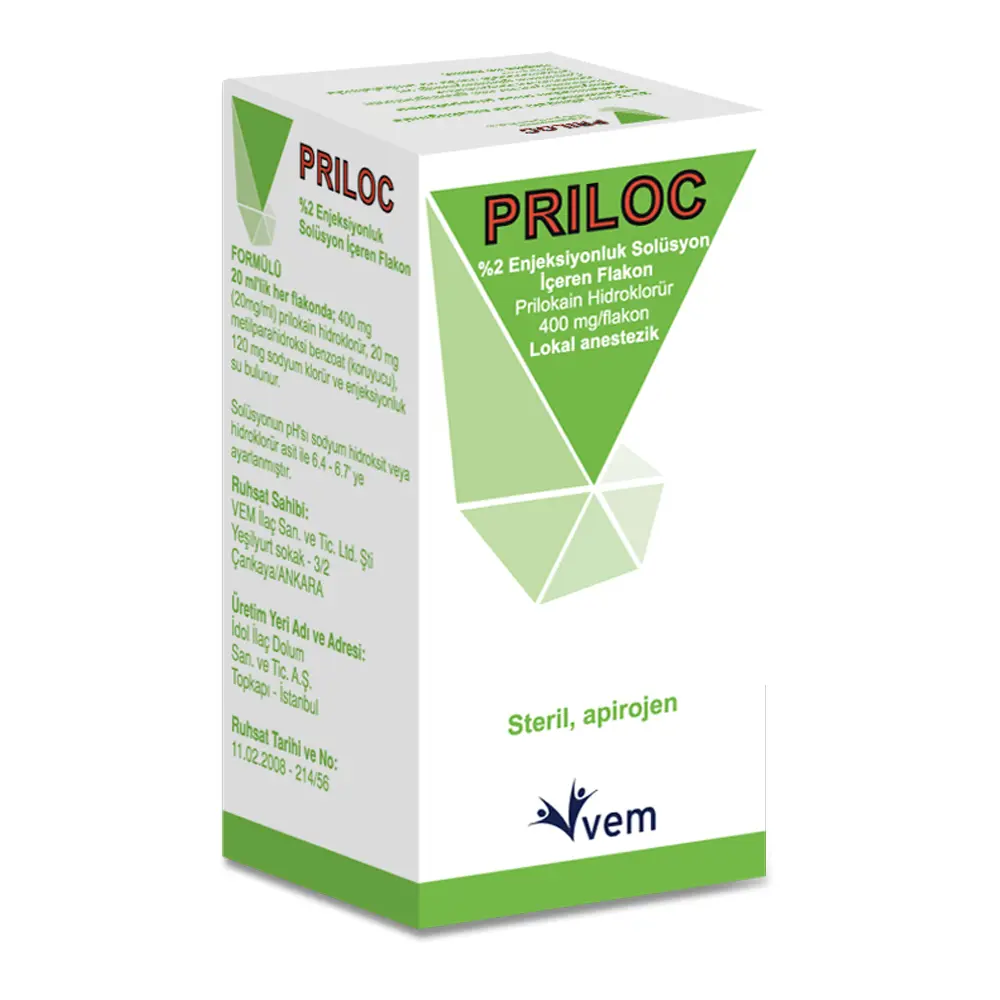 PRİLOC enjeksiyonluk solüsyon içeren flakon lokal anestezik olarak kullanılan bir ilaçtır. PRİLOC 20 ml'lik 1 flakon içeren ambalajlardadır.