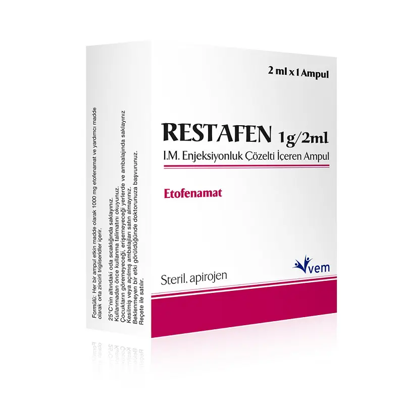 RESTAFEN 1 G/2 ml IM enjeksiyonluk çözelti içeren 3 ampül 1 | 3 | Normal reçete | - | 8699844750497 | 16,85 TL |