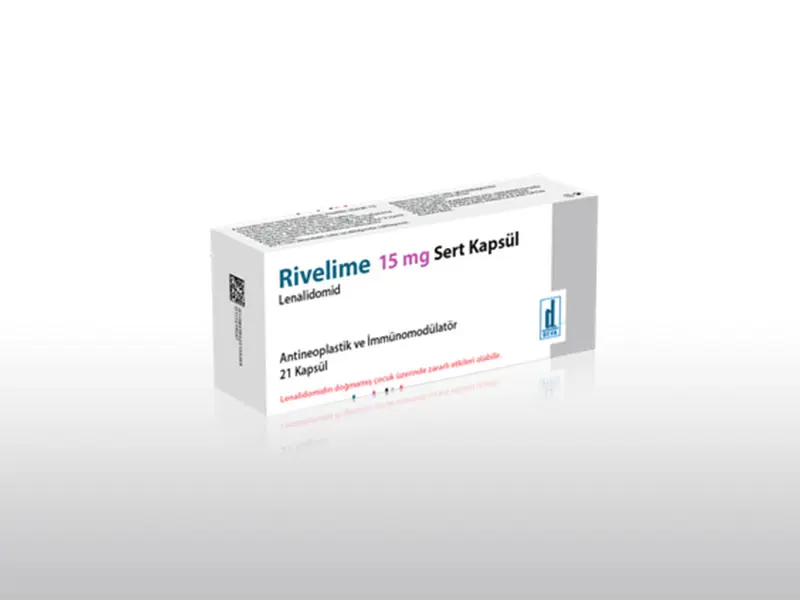 RİVELİME 15 mg sert kapsül, mavi renkli kapak ve beyaz renkli gövdeli kapsüller halindedir. Her kutuda 21 kapsül vardır. RİVELİME, lenalidomid isimli etkin maddeyi içerir. Bağışıklık sisteminin fonksiyonlarını değiştirebilen ya da düzenleyebilen immünomodülatörler olarak isimlendirilen bir grup ilaç sınıfındandır.