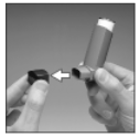 - İnhalerinizi ilk kez kullanıyorsanız, çalışıp çalışmadığını test edin. Ağızlık kapağını baş parmağınız ve işaret parmağınız arasında tutup hafifçe sıkın ve çekerek çıkarın.
