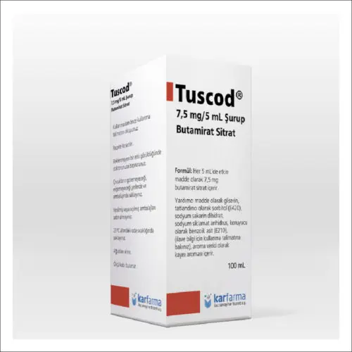 - TUSCOD etkin madde olarak butamirat sitrat içeren, şurup formunda bir ilaçtır.