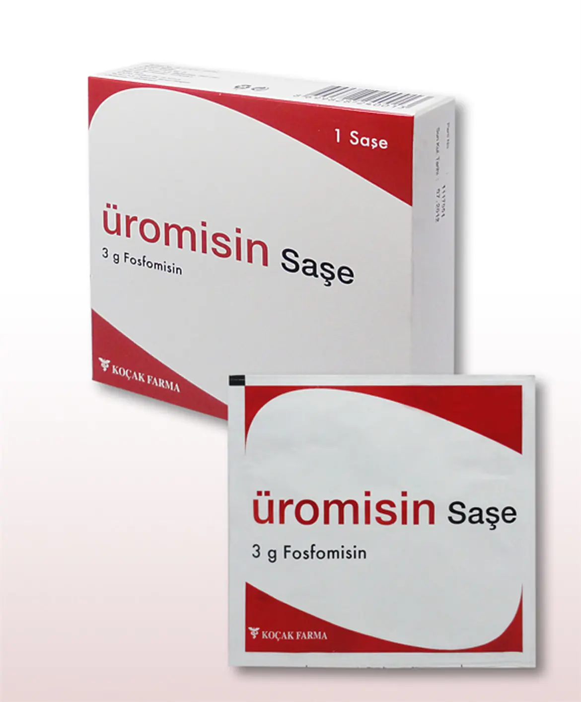 ÜROMİSİN saşe etkin madde olarak 3 g fosfomisine eşdeğer 5,631 gram fosfomisin trometamol içerir.