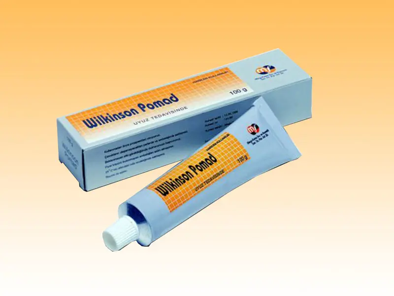 Wilkinson % 12.5 deri pomadı 100 gramlık alüminyum tüpte kullanıma sunulmuştur.