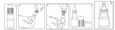 Koruyucu başlığı çıkarınız, başınızı hafifçe arkaya yaslayınız, nazikçe alt göz kapağınızı aşağıya doğru çekiniz (Şekil 2), oluşan konjunktival keseye dikkatlice bir damla damlatınız (Şekil 3).