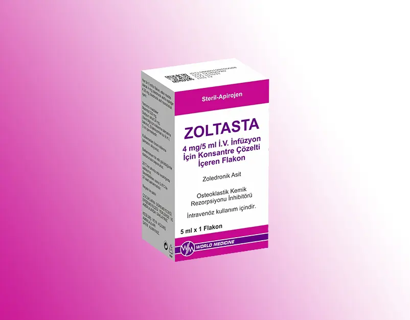 ZOLTASTA; damar içine uygulanan, 7 ml’lik flakon içerisinde takdim edilen renksiz ve berrak bir çözeltidir. Bu konsantre çözelti kullanılmadan önce seyreltilir. Her 5 ml çözelti 4 mg zoledronik asit adı verilen bir etkin madde içerir. ZOLTASTA, bisfosfonatlar adındaki madde grubunun güçlü bir üyesidir.